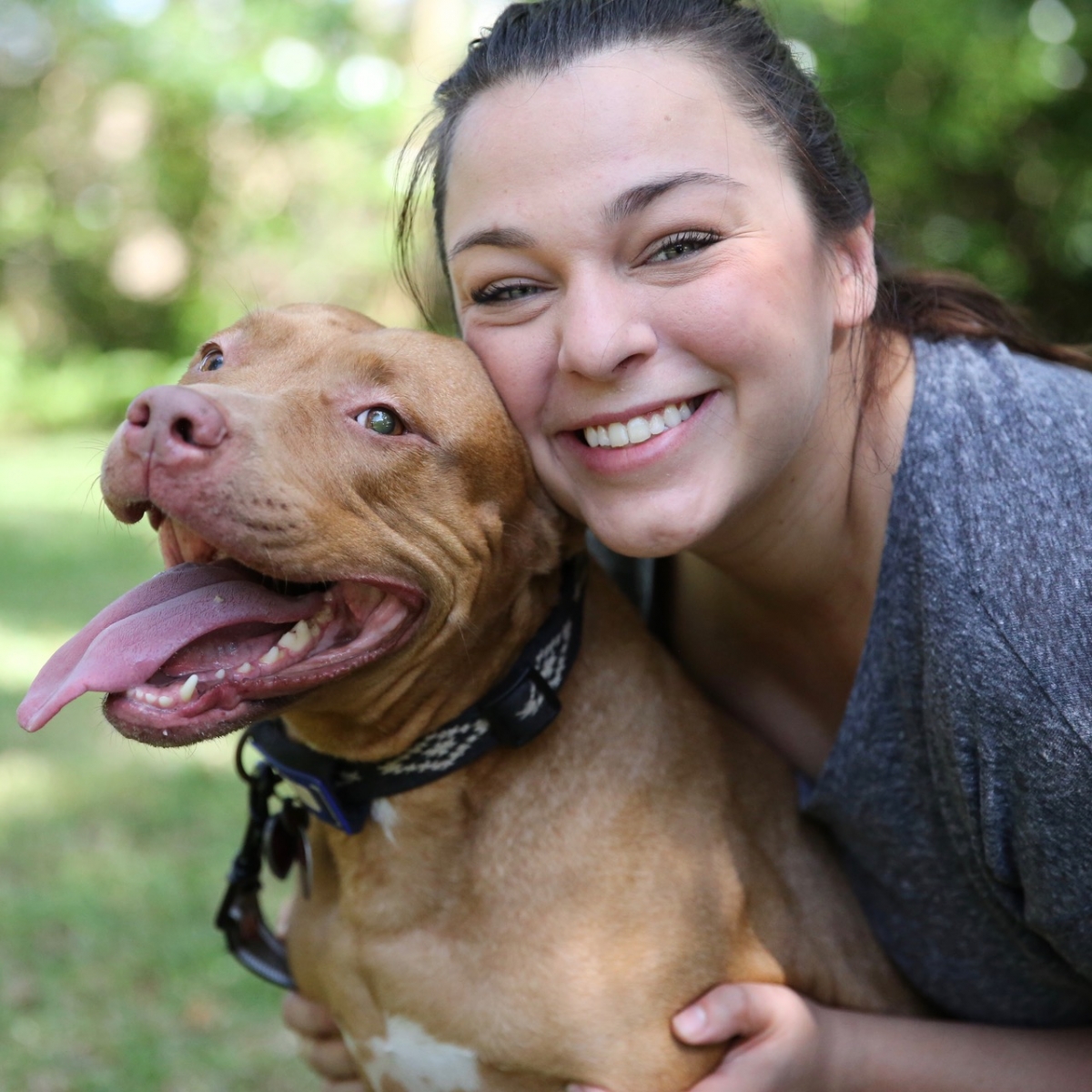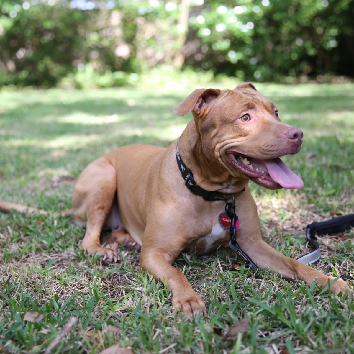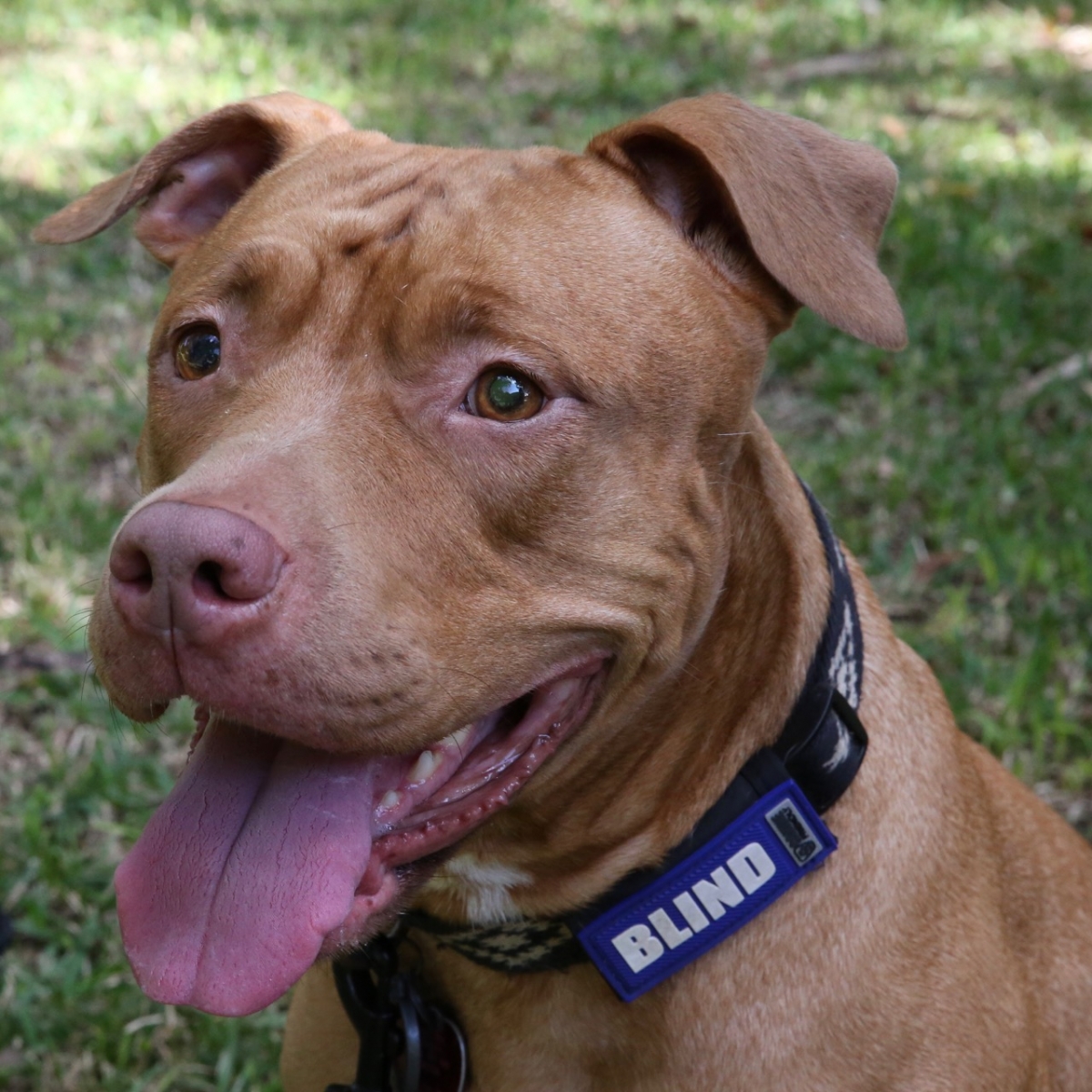 Honey is a beautiful pitbull who has been blind since birth. She’s a very happy and sweet and loving dog.